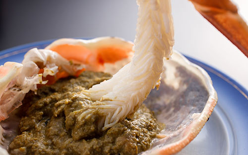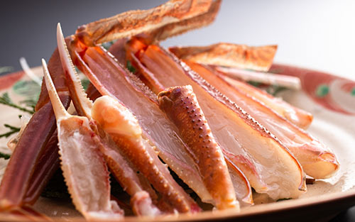 [ 11月初旬~3月下旬 ] 日本海の味覚の王様「松葉がに」。 冬にはかにを目当てに山陰を訪れる方がほとんど。それほどに人を引き付けるおいしさがあります。 活きが良く身の詰まった松葉がには刺し、茹で、焼き、鍋、どう料理しても絶品です!