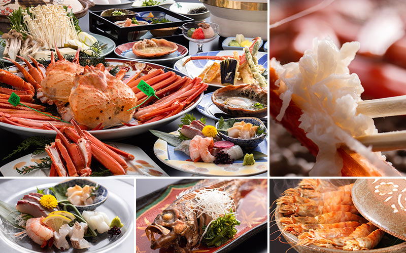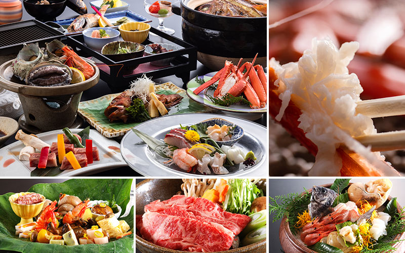 四季折々にその季節ならではの厳選素材を使用したお料理プランは絶品。竹野漁港からの海の幸、山陰但馬の自然に育まれた山の幸を目いっぱい楽しめます。